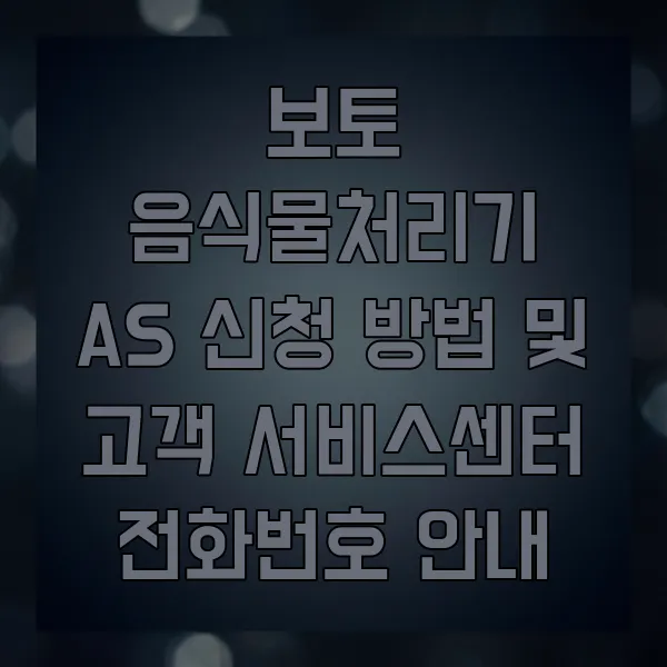 보토 음식물처리기 AS는 전화(1544-XXXX) 또는 공식 홈페이지 를 통해 신청 가능해요. 제품 모델명과 증상을 미리 준비하면 더욱 신속한 처리가 가능합니다.